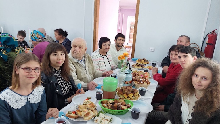После служения общение продолжилось за чаепитием. За столами звучали истории, проходили конкурсы, люди делились впечатлениями и часто улыбались. Особенно трогательно прошло время для супружеских пар: каждой паре предложили написать друг другу письма под названием «Только ты», продолжая фразы, например: